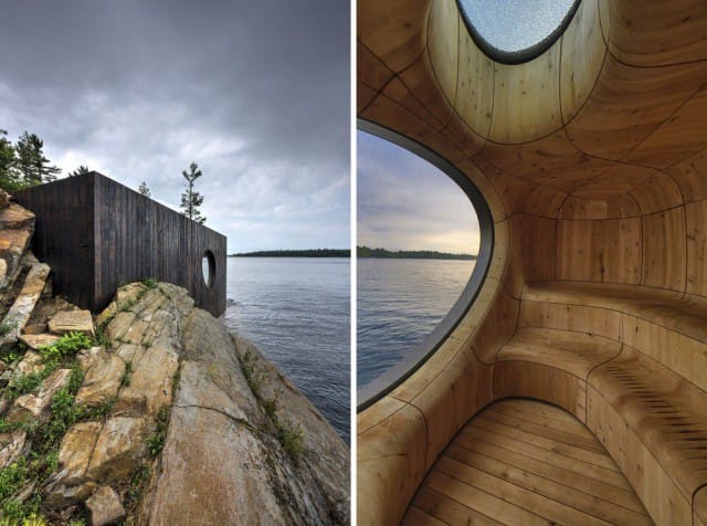 Tällainen sauna pitäisi löytyä jokaisen kesämökin rantakalliosta. Suunnittelutoimisto Partisansin Grotto-sauna ottaa huomioon ympäristönsä istumalla rantakallion muotoihin kuin nenä päähän. 74-neliöinen sauna löytyy pienen yksityissaaren luoteiskulmasta Toronton edustalta.