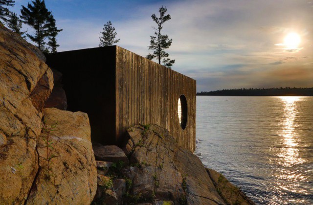 Tällainen sauna pitäisi löytyä jokaisen kesämökin rantakalliosta. Suunnittelutoimisto Partisansin Grotto-sauna ottaa huomioon ympäristönsä istumalla rantakallion muotoihin kuin nenä päähän. 74-neliöinen sauna löytyy pienen yksityissaaren luoteiskulmasta Toronton edustalta.