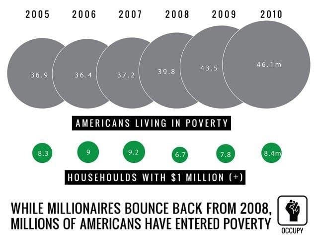 Amerikkalainen unelma on näyttäisi olevan romahtamassa, jos on uskominen The Associated Pressin tutkimusta. Sen mukaan jopa noin 80 prosenttia, eli neljä viidestä yhdysvaltalaisesta kärsii työttömyydestä tai lähentelee köyhyysrajaa. Syiksi alamäkeen listataan globaalimmaksi muuttunut talous, köyhien ja rikkaiden välisen kuilun syveneminen ja hyvätuloisten tehdastöiden katoaminen.