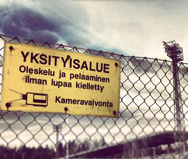 ”Tunnen oloni epämukavaksi”, Laitinen sanoo ja viittaa Asiaton oleskelu kielletty -kylttiin.