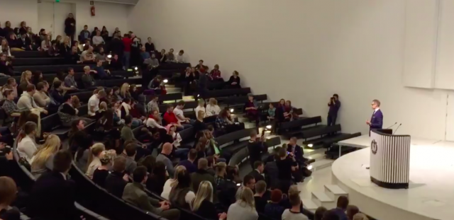 “Siviilipukuinen poliisi poisti tämän opiskelijan turvamiehen kanssa. Lähdin heidän peräänsä juhlasalista ja pysäytin heidät. Esittelin itseni. Opiskelija sanoi, että poliisi uhkasi viedä hänet koppiin. Selitin poliisille, että yliopistolla opiskelijoilla on oikeus puhua, puuttua puheeseen, huutaa, jos tarpeen. Ja että tämä opiskelija ei lähde koppiin, vaan takaisin juhlasaliin tai minne haluaa. Poliisi ymmärsi tämän. Häpeällistä yliopistolle. Olemme kuin lampaat teuraalla.”