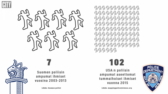 Kuolemaanjohtaneiden tapausten määrän ja uutisiin nousevien tapausten perusteella yhdysvaltalainen poliisi toimii erilaisessa ympäristössä erilaisilla pelisäännöillä, mitä meillä on totuttu. Toivottavasti Suomessa voi jatkossakin luottaa poliisiin ystävänä. On kiva ajatella, että New Yorkin metrossa sankaritekoihin yltäneet poliisit olisivat voineet olla suomalaisia.