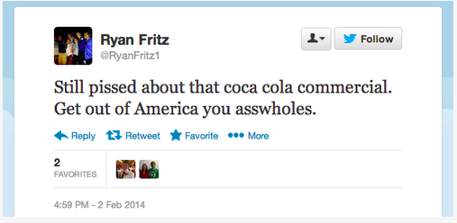Jotkut sekoittivat mainoksen laulun jopa God Bless America-kappaleeseen, joka on yhdysvaltalainen isänmaallinen laulu. Monille tuntui olevan tärkeää, että Amerikassa puhutaan vain englantia, mutta eivät silti välittäneet siitä, mitä oikeinkirjoitus tarkoittaa. Uskomatonta kuin se onkin, niin näitä twiittejä tulvi Coca-Colalle mainoksen jälkeen. Katso itse alla olevista kuvakaappauksista miten ihmiset suuttuivat.