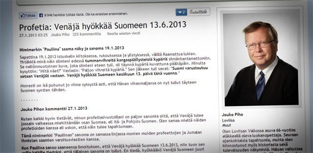 Tammikuun lopulla Suomen Laillisuuspuolueen puheenjohtaja Jouko Piho antoi synkän profetiansa: Venäjä tulee jossain vaiheessa miehittämään osan Suomea, eli Itä- ja Pohjois-Suomen.